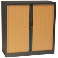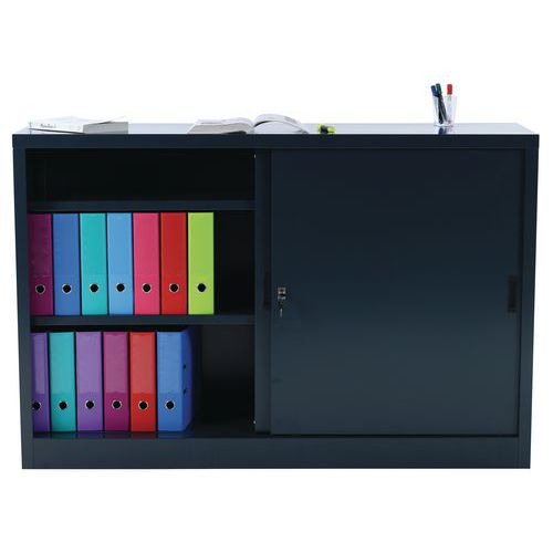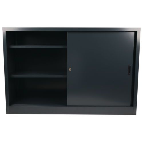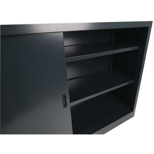Armadio da montare con ante scorrevoli - Basso - L 160 cm - Manutan Expert - Armadio con ante scorrevoli bloccabili tramite serratura. Ripiani regolabili da 36 mm in grado di sostenere cartelle sospese.