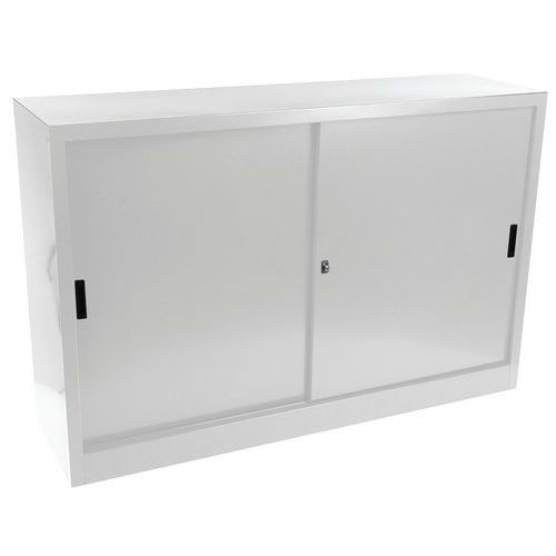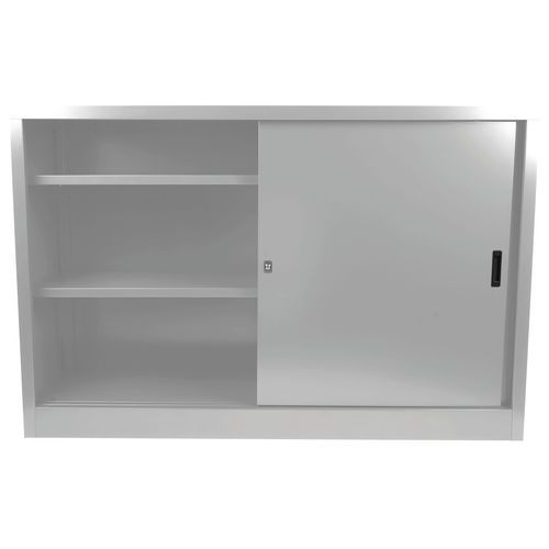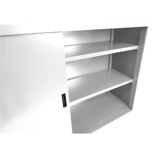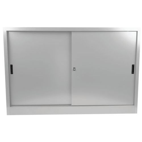 Armadio da montare con ante scorrevoli - Basso - L 160 cm - Manutan Expert - Armadio con ante scorrevoli bloccabili tramite serratura. Ripiani regolabili da 36 mm in grado di sostenere cartelle sospese.
