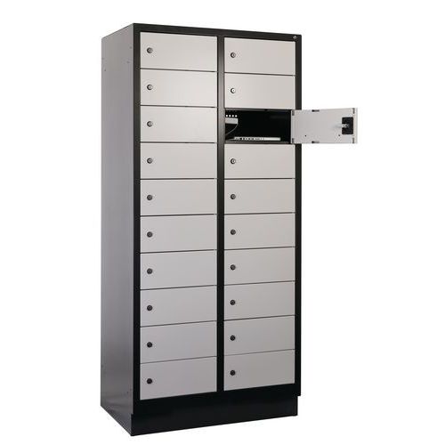 Armadio in acciaio con sistema di collegamento interno per PC.