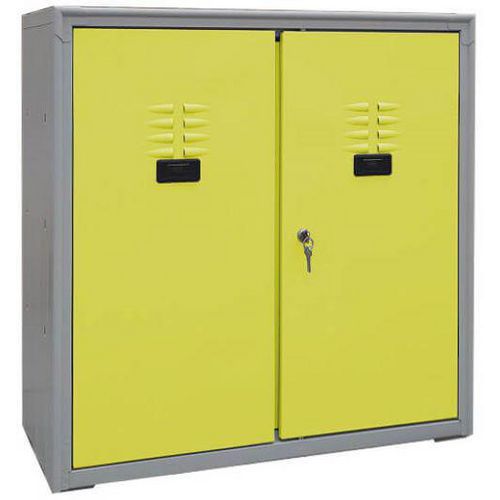 Armadio multiuso monoblocco elettro-puntato non assemblato. Struttura portante realizzata in lamiera d’acciaio profilata di prima scelta con verniciatura acrilica con elevata resistenza alla corrosione. Ante speciali rinforzate e dotate di feritoie di aerazione nella parte superiore ed inferiore. Cerniere interne speciali antiscasso con perno di rotazione interno invisibile ad anta chiusa. Bordo frontale perimetrale arrotondato anti urto raggio di mm 6 e nervature longitudinali su fianchi e porte. Trattamento delle superfici: a mezzo fosfato di ferro pesante come preparazione alla verniciatura che avviene per elettrodeposizione anodica con spessore garantito in ogni parte del mobile, reticolazione a forno a 180°.