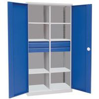 Robusto armadio da officina alto per materiali e utensili pesanti.