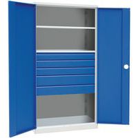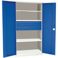 Robusto armadio da officina alto per materiali e utensili pesanti.