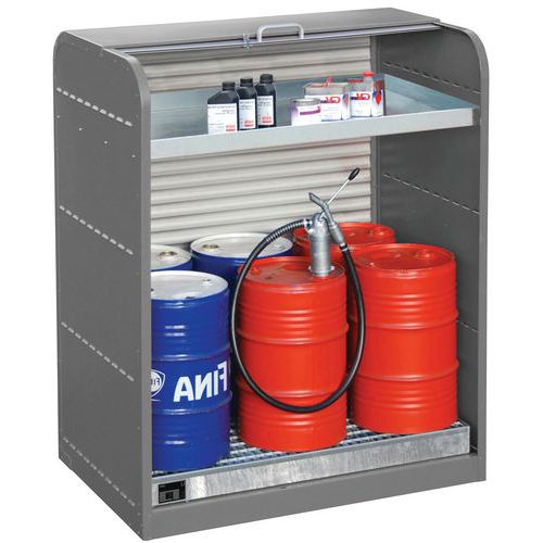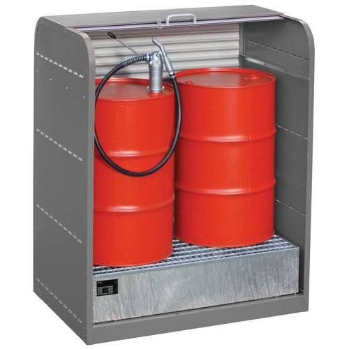 - Armadio di ritenzione per lo stoccaggio di fusti o piccoli recipienti.