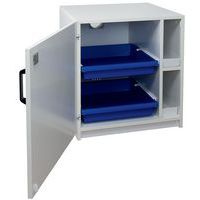 Armadio di sicurezza a scomparti per separare acidi e basi. Dotato di piedi con martinetti per la messa a livello. Vaschette di raccolta in polipropilene su guide scorrevoli. Struttura resistente alle aggressioni dei vapori corrosivi. Fori di ventilazione per il collegamento alla cassa di ventilazione. Conforme alle raccomandazioni INRS.