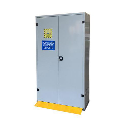 Armadio di sicurezza componibile per lo stoccaggio bombole gas compresso realizzato in lamiera di acciaio al carbonio P02 spessore 10/10.