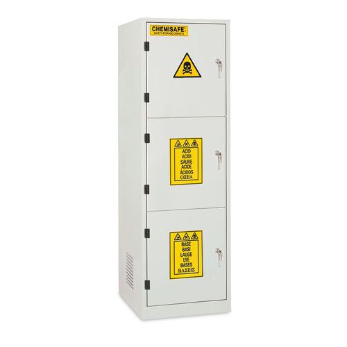 - Armadi di sicurezza per lo stoccaggio di prodotti chimici acidi e basi.