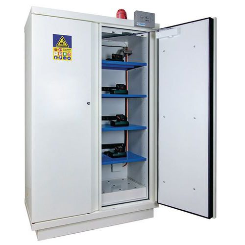 | Descrizione | Armadio di sicurezza per lo stoccaggio di batterie al litio, Materiale: Acciaio, Altezza totale: 1950 mm |