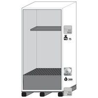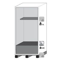 Stoccaggio sicuro, conforme alla normativa in vigore relativamente alle sostanze pericolose e infiammabili nelle aree di lavoro Funzione/Costruzione: massimo comfort di lavoro: richiamo porte automatico, blocco in posizione aperta e stoccaggio in sicurezza dei recipienti Utilizzo controllato: porte con serratura integrata Flessibilità interna: base per il trasporto in interni facile e senza rischi Aerazione e ventilazione: sistema di aerazione e ventilazione integrate grazie al collegamento (diametro 75 mm) con un dispositivo di evacuazione dell'aria Decantazione nella massima sicurezza: messa a terra end-to-end al pannello posteriore