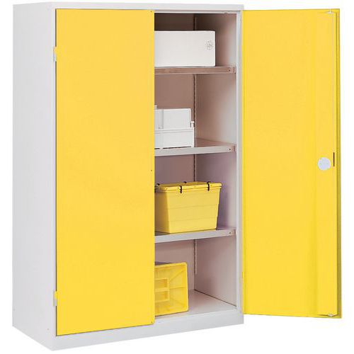 Questo armadio di sicurezza permette di immagazzinare piccole quantità di prodotti pericolosi. Tuttavia non può essere considerato ignifugo.