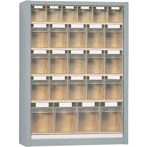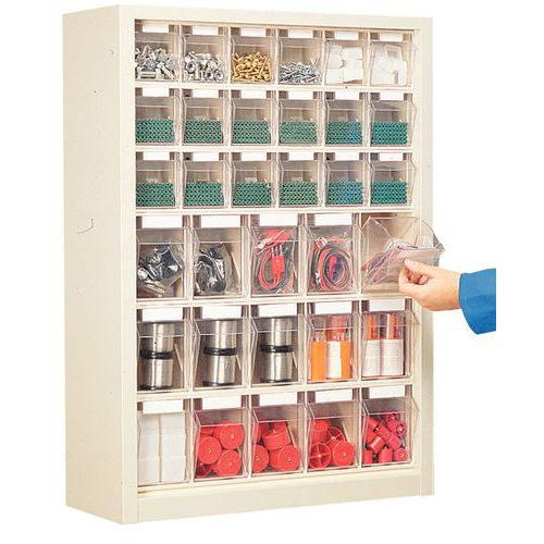 - Contenitori ribaltabili trasparenti facilmente rimovibili dall'armadio in acciaio.