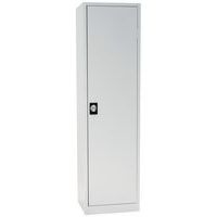 - Armadio con ante a battente e parete estremamente solida. Ripiano regolabile con una portata massima di circa 60 kg. L'armadio è dotato di una serratura a cilindro a due punti. Spessore della lamiera dei 2 armadi 0,7 mm.