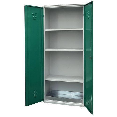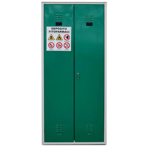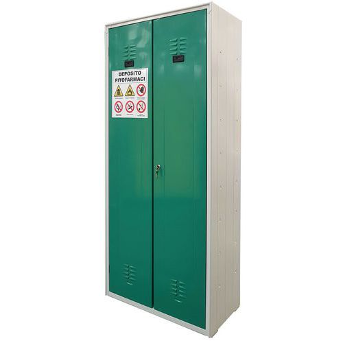 Corpo in colore grigio RAL 7035 e ante in colore verde RAL 6000.