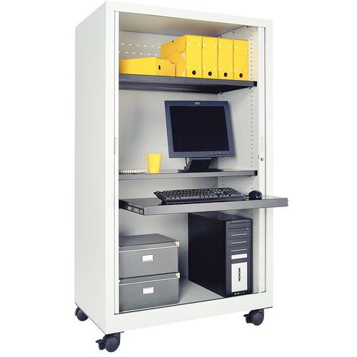 | Descrizione | Armadio multimediale mobile con ante a serranda in lamiera di acciaio 8/10e, Ripiano, colore: Grigio |