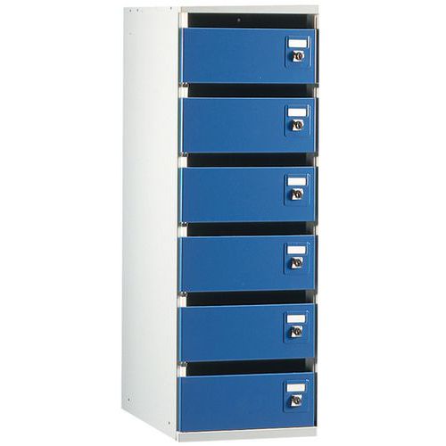Comfort di utilizzo: anta ribassata con angoli smussati. Chiusura di ogni scomparto con serratura a cilindro. Porta-etichetta in acciaio inossidabile. La scelta ideale per allestire una sala spedizioni versatile. Consigli di sicurezza: - Installare il mobile su una superficie piana - Fissarlo a un muro o a una parete divisoria con dispositivi di fissaggio appropriati - Prestare attenzione a non superare il carico massimo consigliato e a ripartirlo adeguatamente Scegliete per la corrispondenza interna un armadio robusto e pratico, con montaggio a pavimento o sospeso