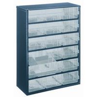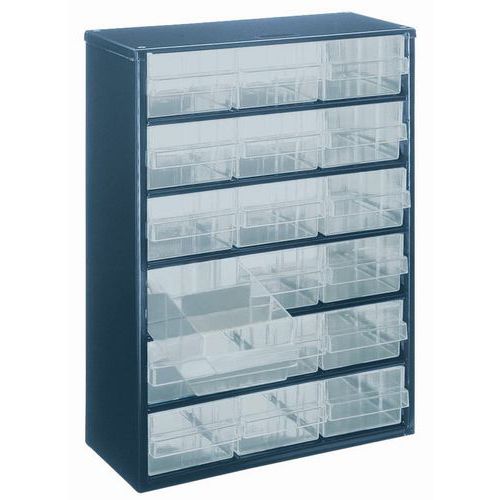 Per riporre gli oggetti in modo ordinato e ripararli dalla polvere. Si possono combinare facilmente più armadietti. Solidi cassetti scorrevoli con maniglie infrangibili. L'armadietto in acciaio può essere posato al suolo o appeso alla parete. Realizzato nell'UE Garanzia Cliente : 3 anni Carico max. (kg) : 45 kg