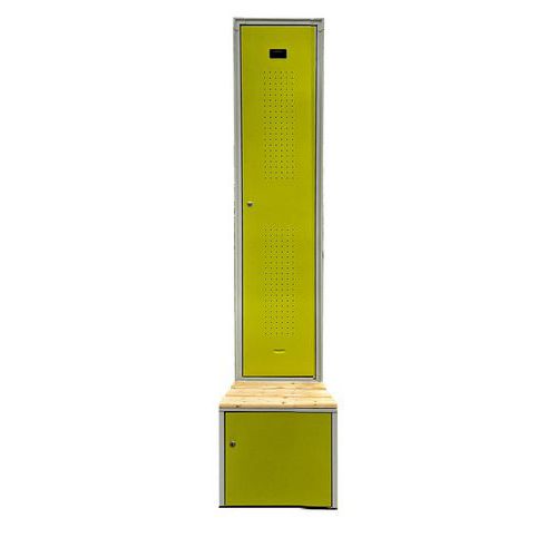 Armadio spogliatoio monoblocco su struttura contenitiva portante completa di doghe in legno verniciate al naturale.