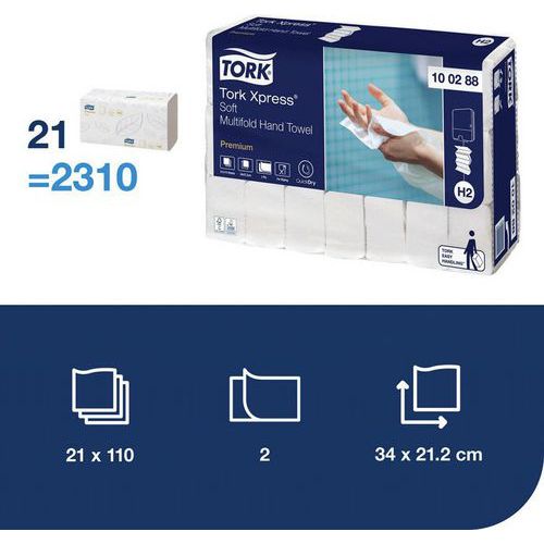 Asciugamani extramorbidi che trasmettono una piacevole sensazione alle mani. Qualità QuickDry: più resistente e assorbente della carta normale. Distribuzione di fogli singoli: consumo controllato e igiene migliore. Omologato per contatti con alimenti di breve durata, Asciugamano di carta goffrato e a motivi. Per un'asciugatura igienica delle mani in ambienti esigenti in materia di comfort e igiene