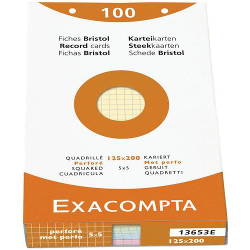 | Descrizione | Astuccio da 100 schede a quadretti perforate x 12 assort., Grammatura: 205 g/m², Rigatura: Quadretti piccoli |