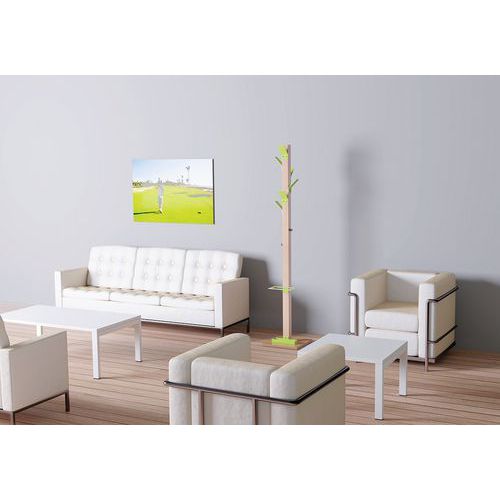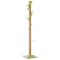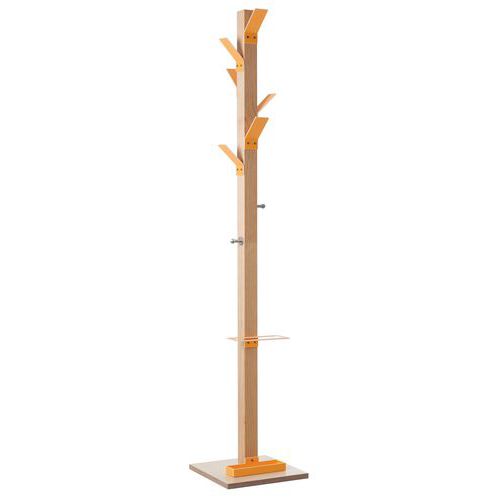 Fusto in faggio massello verniciato, appendini, portaombrelli e vaschetta colorati.