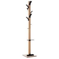 6 appendini in polistirene antiurto ad alta resistenza per indumenti. 2 appendini in acciaio cromato per accessori. Fusto in faggio massello sezione 60 mm x 60 mm. Base su piedi in compensato 35 cm x 35 cm, spessore 20 mm.