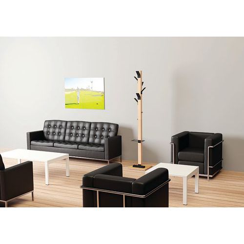 Attaccapanni dalla stabilità perfetta con base larga con piedi quadrati in compensato.