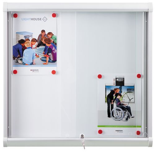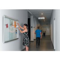 Bacheca per affissioni per interni Natura con ante scorrevoli senza parti in eccesso, per evitare rischi di intralcio, urto o blocco. Perfetta per i luoghi frequentati dove ogni centimetro conta. Grande capacità di affissione (da 6 a 27 fogli A4). Che si tratti di un'esposizione limitata o di una comunicazione più densa, la bacheca si adatta a tutte le esigenze: scuole, uffici, hall di accoglienza, condomini, laboratori….