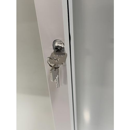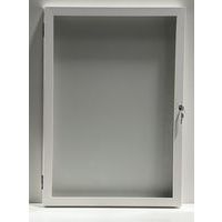 Bacheca per esterni fondo bianco a tenuta perfetta, resistente agli agenti atmosferici. Magnetica, consente l'affissione con magneti. Con serratura per mettere al sicuro le vostre affissioni. Con anta con vetro temprato per una resistenza elevata.
