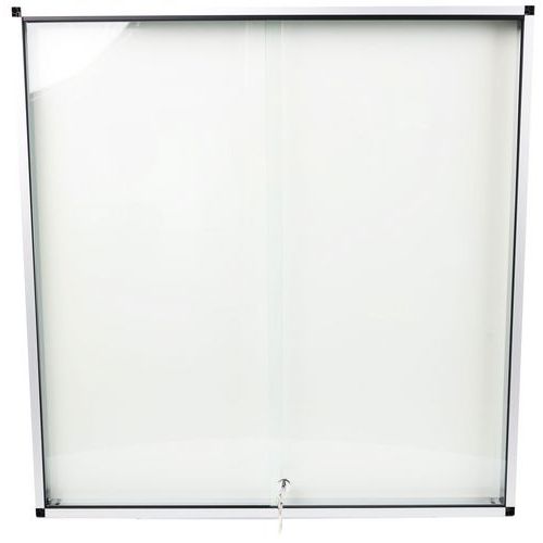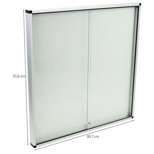Bacheca per affissioni per interni robusta, sicura e leggera. Superficie magnetica in acciaio laccato per l'affissione dei vostri documenti tramite puntine magnetiche. Anta scorrevole con serratura trasparente, offre un'eccellente visibilità del materiale esposto. Bacheca in vetro rinforzato con spessore di 5 mm per maggiore sicurezza. Con serratura e 2 chiavi fornite.