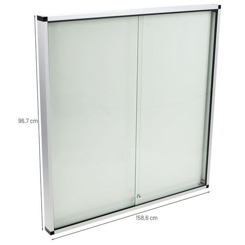 Bacheca per affissioni per interni robusta, sicura e leggera. Superficie magnetica in acciaio laccato per l'affissione dei vostri documenti tramite puntine magnetiche. Anta scorrevole con serratura trasparente, offre un'eccellente visibilità del materiale esposto. Bacheca in vetro rinforzato con spessore di 5 mm per maggiore sicurezza. Con serratura e 2 chiavi fornite.