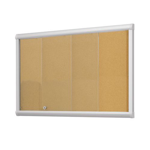 Bacheca per interni con ante scorrevoli Leader - Fondo in sughero - Anta in vetro di sicurezza