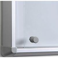 Bacheca per interni con fondo magnetico. Sicurezza ottimale, angoli arrotondati stampati a iniezione, porte scorrevoli in vetro e spessore minimo. Ideale per corridoi interni e l'affissione di istruzioni per l'evacuazione di emergenza. Scrivibile e magnetico, fondo in metallo di buona qualità. Profondità interna da 30 mm. Certificazione B1 di resistenza al fuoco (EN 13501 – 1 Classe C).