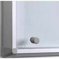Bacheca per interni con fondo magnetico. Sicurezza ottimale, angoli arrotondati stampati a iniezione, porte scorrevoli in vetro e spessore minimo. Ideale per corridoi interni e l'affissione di istruzioni per l'evacuazione di emergenza. Scrivibile e magnetico, fondo in metallo di buona qualità. Profondità interna da 30 mm. Certificazione B1 di resistenza al fuoco (EN 13501 – 1 Classe C). Realizzato nell'UE