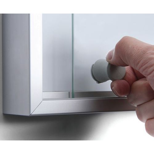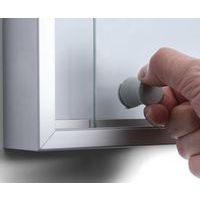 Bacheca per interni con fondo magnetico, Slim. Fondo in metallo di buona qualità utilizzabile per magneti e pennarelli. Porte scorrevoli in vetro di sicurezza. Profilo sottile e pulito.