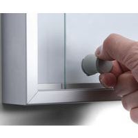 Bacheca per interni con fondo magnetico, Slim. Fondo in metallo di buona qualità utilizzabile per magneti e pennarelli. Porte scorrevoli in vetro di sicurezza. Profilo sottile e pulito.