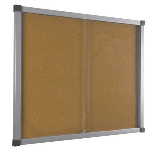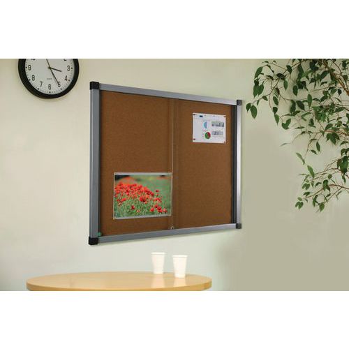 Bacheca per interni Cube - Fondo in sughero - Anta in vetro di sicurezza