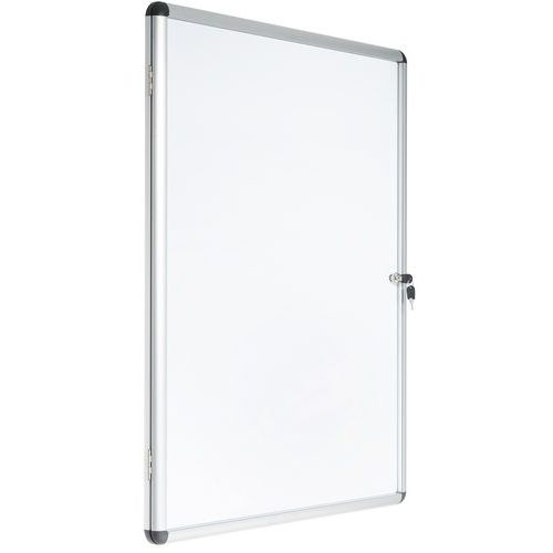 Bacheca per affissioni per interni robusta, sicura e leggera. Superficie magnetica in acciaio laccato per l'affissione dei vostri documenti tramite puntine magnetiche. Anta a battente con serratura trasparente, offre un'eccellente visibilità del materiale esposto.