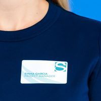 Badge adesivo in tessuto, Colore: Bianco, Tipo di fissaggi: Adesivo, Lunghezze: 80 mm, Altezza: 50 mm