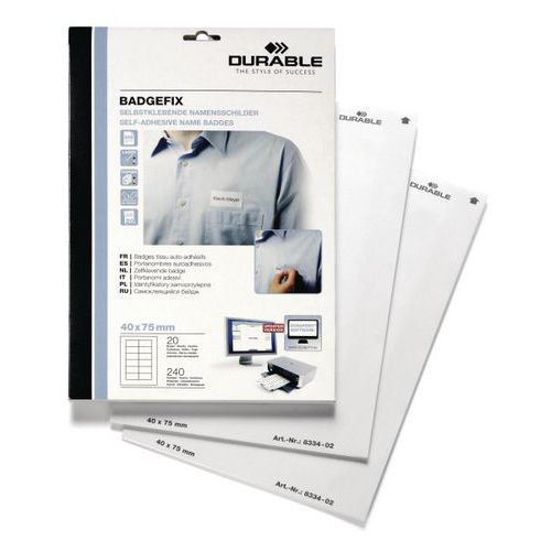 | Descrizione | Badge adesivo in tessuto, Colore: Trasparente, Tipo fissaggio: Adesivo, Lunghezza: 75 mm, Altezza: 40 mm |