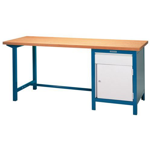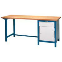 Banco robusto adatto per l'utilizzo in officina. Dotato di un solido piano in multistrato. Con cassettiera da banco bloccabile con serratura e un cassetto per riporre il proprio materiale in totale sicurezza.
