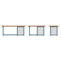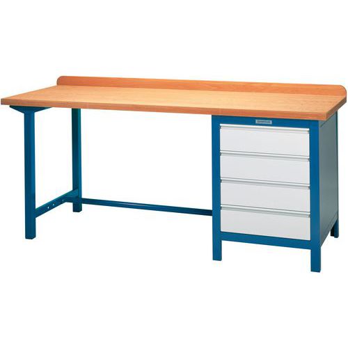 Banco robusto adatto all'uso in officina. Dotato di un piano solido multistrato. Con 4 cassetti per conservare i vostri materiali. Banco robusto adatto all'uso in officina. Dotato di un piano solido multistrato. Con 4 cassetti per conservare i vostri materiali.