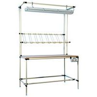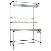 - Banco da lavoro con lampada in plastica e guida porta contenitori.