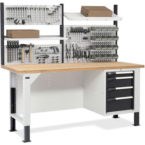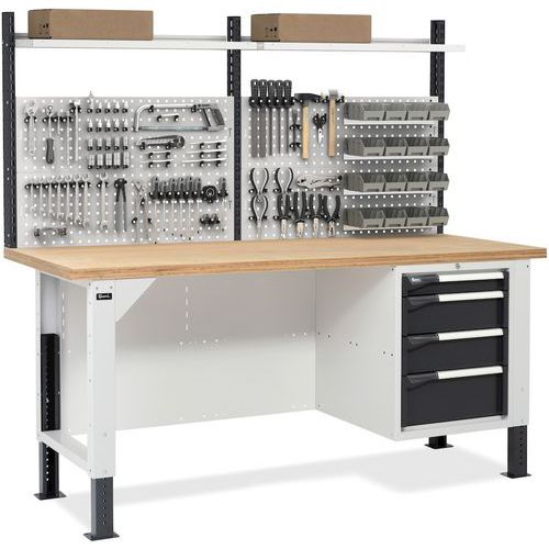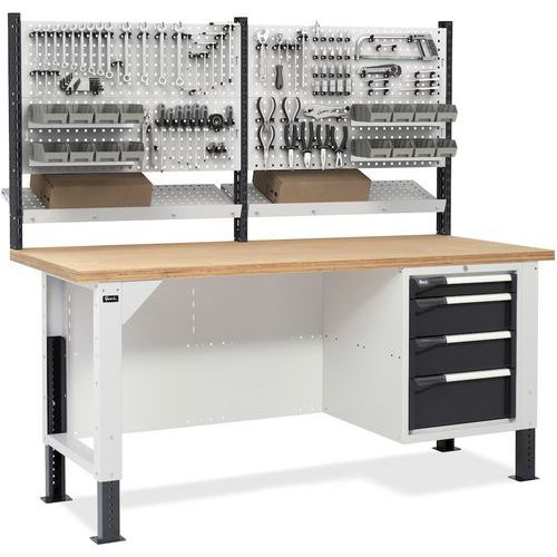 Banco da lavoro con pannello Master BR, Carico max.: 1000 kg, Altezza totale: 2058 mm