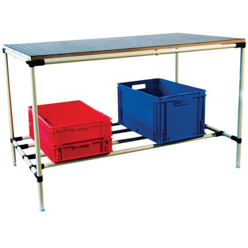 Banco da lavoro con piano in MDF con traversi appoggia cassette