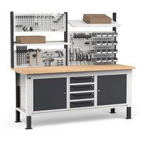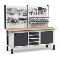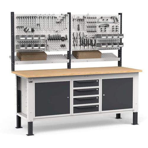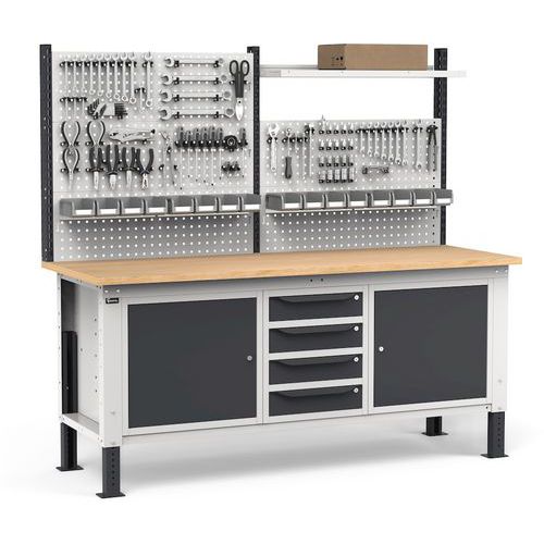 Offre agli operatori la possibilità di organizzare utensili e minuteria riponendoli nella cassettiera o posizionandoli sul pannello traforato con ganci o accessori.