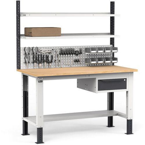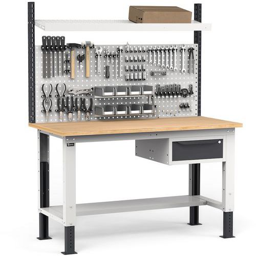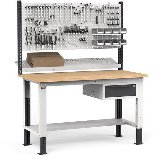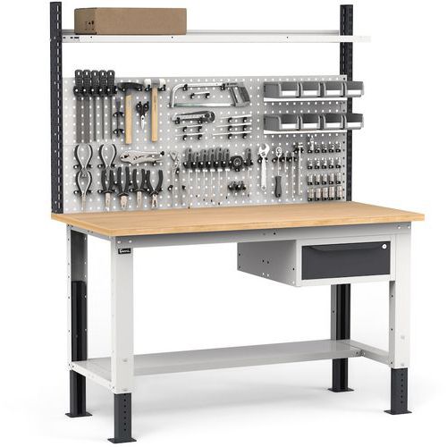 Banco da lavoro Work Up con pannello traforato, Carico max.: 1000 kg, Altezza totale: 2050 mm