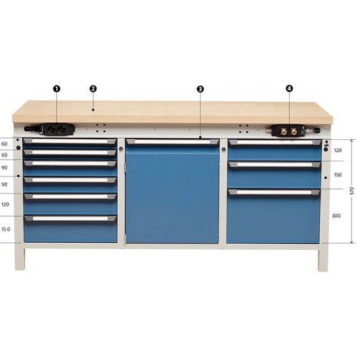 | Descrizione | Banco Function 175, Carico max.: 1500 kg, Altezza totale: 850 mm, Larghezza totale: 1750 mm |