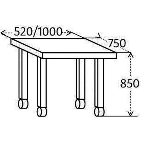 Dotato di 4 rotelle di cui 2 girevoli con freno.