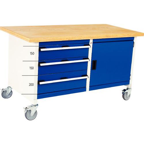 Banco compatto e mobile con un solido piano di lavoro in multistrato.