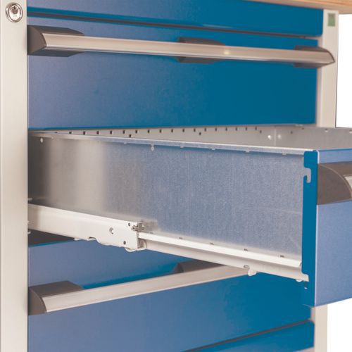 | Descrizione | Banco mobile monoblocco con armadietto e cassetti, Altezza totale: 840 mm, N. di cassetti: 3 |