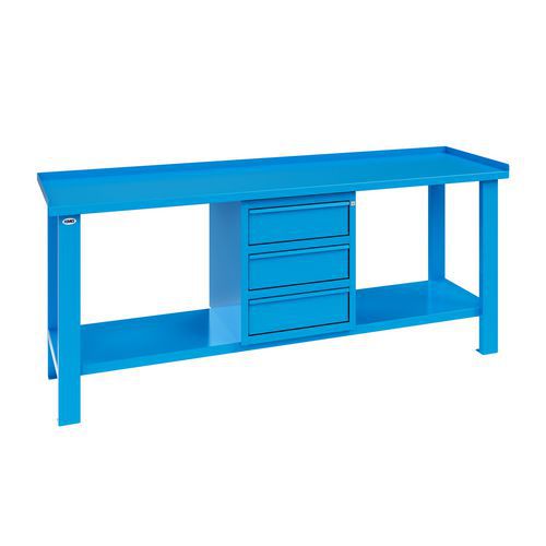 | Descrizione | Banco monoblocco Classic Linea Blu 3 cassetti, Carico max.: 400 kg, Larghezza: 2000 mm, Profondità: 700 mm |